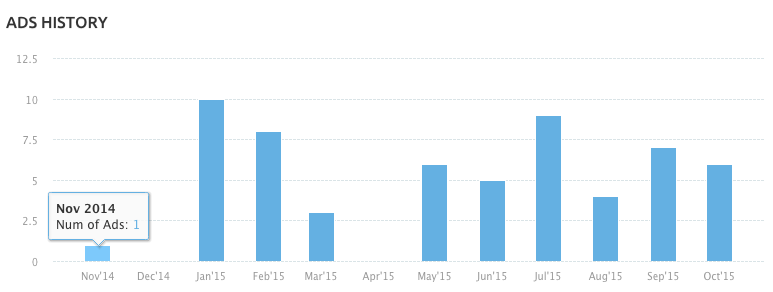 Another great feature that can be found on the Keyword Overview page would be the Ads History block. When people conduct SEO research, they look for how many people are searching for a keyword and how much competition there is for the keyword. You can tell this information through the Search Volume metrics along with the competition level. However, the Ads History section may provide more information to what you are looking for. As you can see in the screenshot below, the Ads History block allows us to see how many people are bidding on a particular keyword in a givenmonth. This example comes from the keyword “landscaping ideas.”