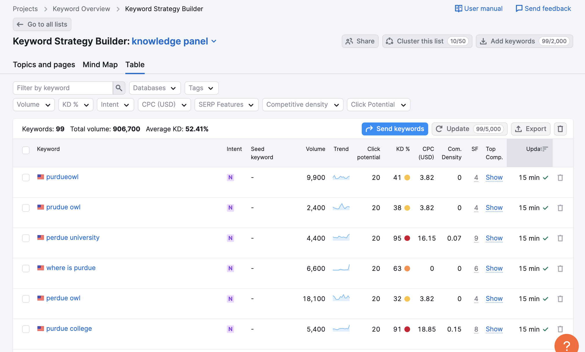 Open the tool, click on your list, and you’ll see detailed information about each keyword.