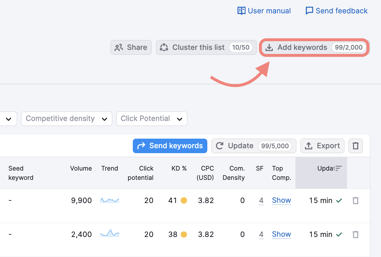 Then, add your keywords separated by commas or one per line. And click “Add keywords.”