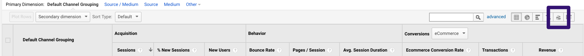 At the top of the traditional tables features within most audience, acquisition, and behavior reports.