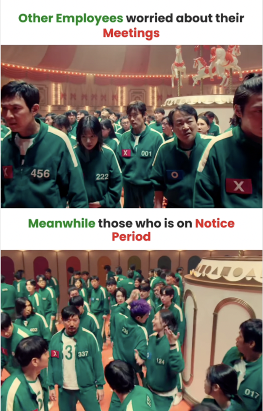 A meme using two scenes from Squid Game